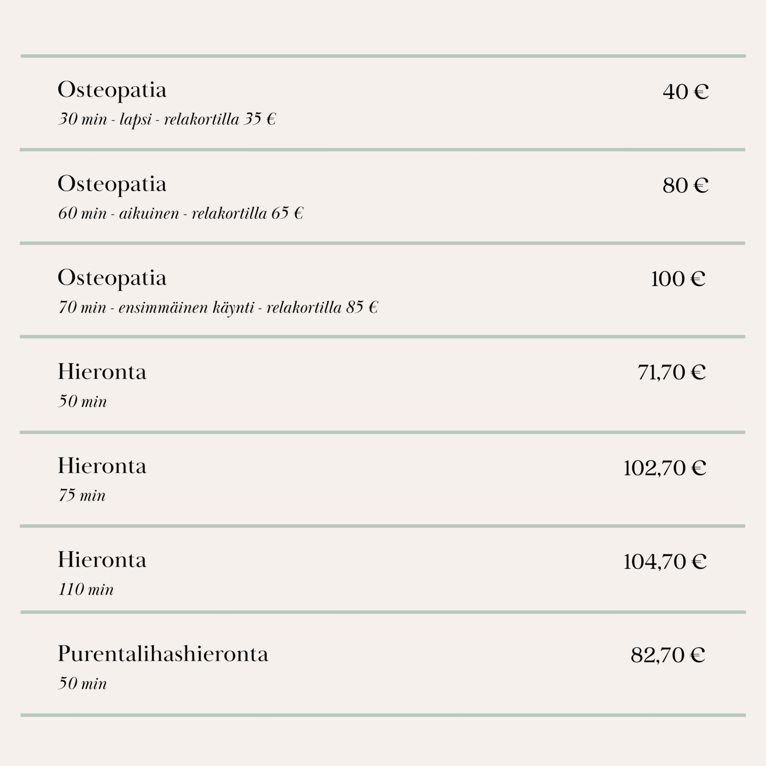 OULUN AJANVARAUS JA HINNASTO